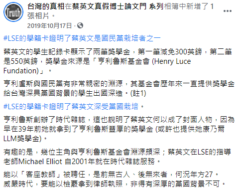 事實上,蔡英文的留學獎學金,是出自於與國民黨淵源很深的基金會,而且慣例都是要蔣夫人同意才會進行補助,可以參照下面文章。利用國民黨的資源及民進黨的敗選上位,然後當權後對異聲的政黨及人民進行網軍,假消息的迫害,沒有任何餘地,割喉嗐到斷的概念,可悲的扭曲心理。