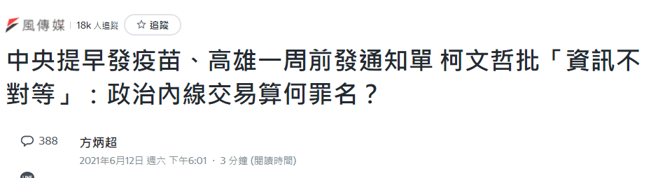 事實上6/9號指揮中心已公布6/12開始會配送疫苗,不過多少劑並沒有寫,所以要看高雄市列出的名單是否與分派的8萬劑相符,如果相符,就是有柯文哲所說的內線問題,不然怎麼這麼精準的知道呢?