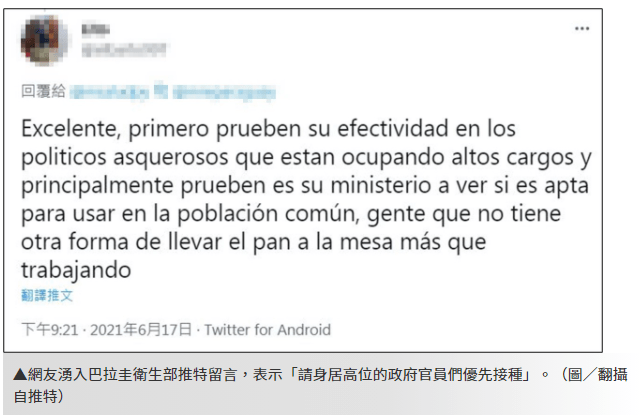 2021-0622左右,傳出巴拉圭要買聯亞的疫苗(二期即將解盲,也不一定會三期,如果高端EUA成功,那聯亞便可循同模式),看看巴拉圭人民怎麼對衛生部留言: