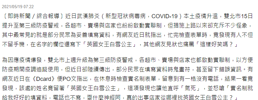 2021-0515台灣很不幸的開始三級管制措施,但一直言必出超前部署的衛福部官員,陳時中,執政民進黨,又造成了一項創舉,實名制之亂!