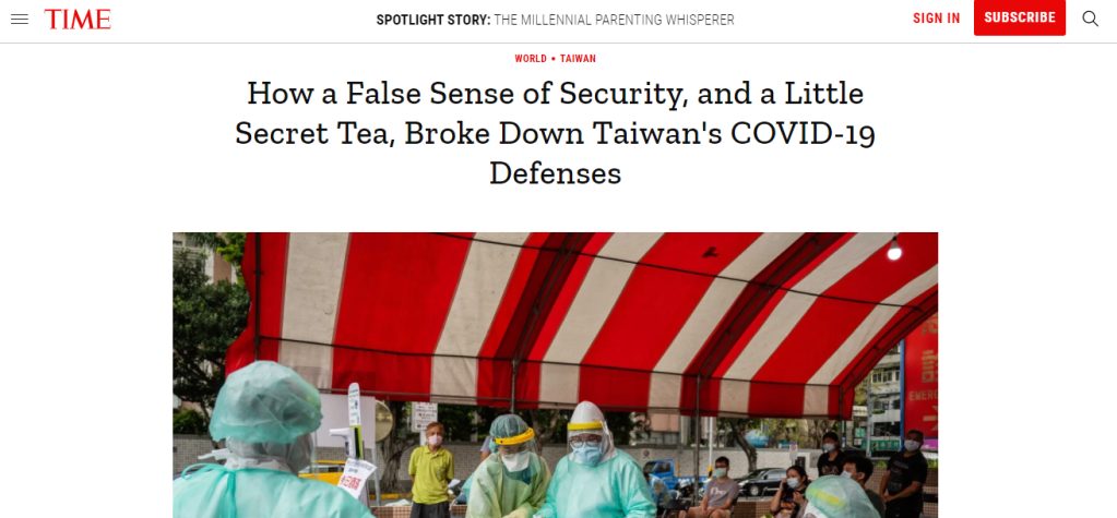 讓我們看看著名的時代雜誌Time怎麼說台灣的破口,譯:「錯覺認為沒疫情,小的秘密茶室,讓台灣的新冠肺炎防疫出現破口」!事實上,從金巴黎破口、磐石艦破口、彰化衛生局長小規模普篩,時光點評認為台灣本土早就有疫情,這就是指揮中心為什麼一直不普快篩的原因,粉飾太平掩耳盜鈴,難道為的是國產疫情的七倍十倍股價?為的是不讓台灣人知道真相來維護政權?我不相信指揮中心的專家學者不知道,這只是基本的邏輯問題罷了。