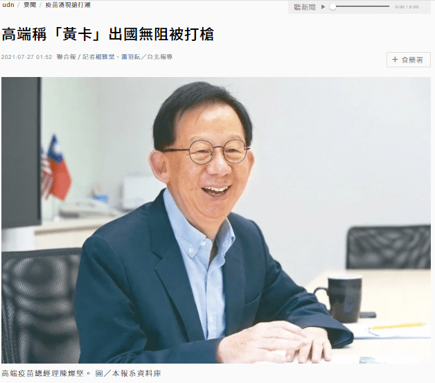 2021-0726高端疫苗的總經理陳燦堅先生,竟然說打高端出國沒問題,時光點評很擔心他的頭腦還有高端疫苗的成效啊(在他領導下)…