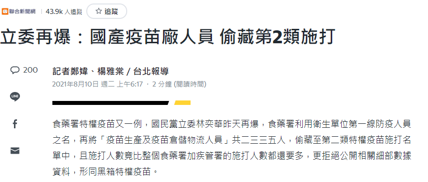 高端等國產疫苗公司的員工,卻早就偷渡在第二類人員下,打了AZ/莫德納。拿陳時中喜歡的蛋糕比喻好了,整天吹捧自己的蛋糕多讚,員工卻下班燈熄後去買隔壁的蛋糕回家。