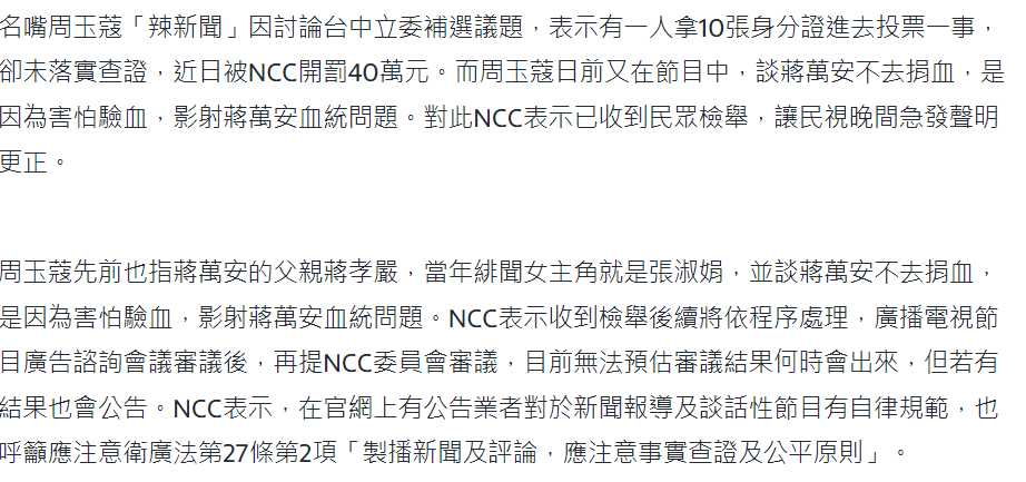 而且,標題上面周玉蔻被罰四十萬,已過了去年台中市中二選區補選多久了呢?不管是哪黨的候選人因此而輸了,這個經費何止四十萬,人格、時間要怎麼重來呢?這應該是以蓄意殺人未遂來論刑才是,人格對某些人就是一生懸命捍衛的東西,怎麼可以這樣縱容周玉蔻這斯人物去抹殺呢?!