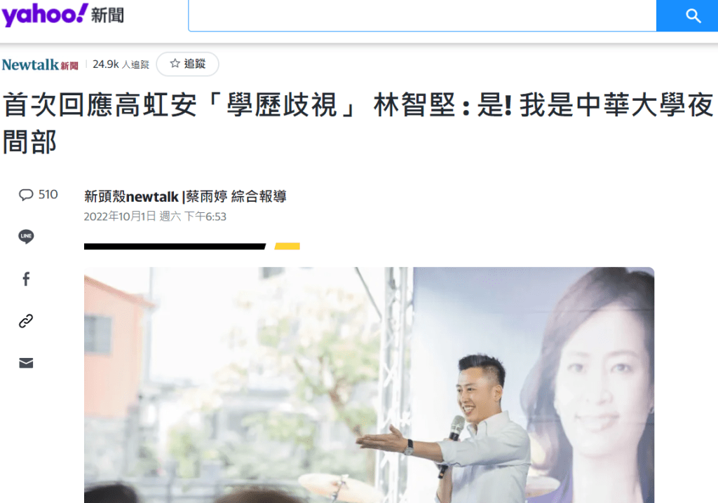 如果,林智堅一開始就說我是「中華大學夜間部」當選新竹市長,然後努力做,就是令人學習的故事,也可以被人說成夜間部也是有好人才的佳聞。