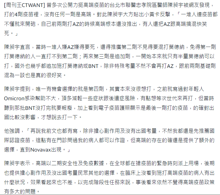 一個人不要看他說多愛你,要看他花多少時間,多少金錢在你的身上,實際行動才是真的。如果以這個邏輯來看,就是這位陳醫生嘴砲根本不愛高端,不然有什麼不能等的呢?少你一位醫生,難道台灣醫療體系會崩潰嗎?