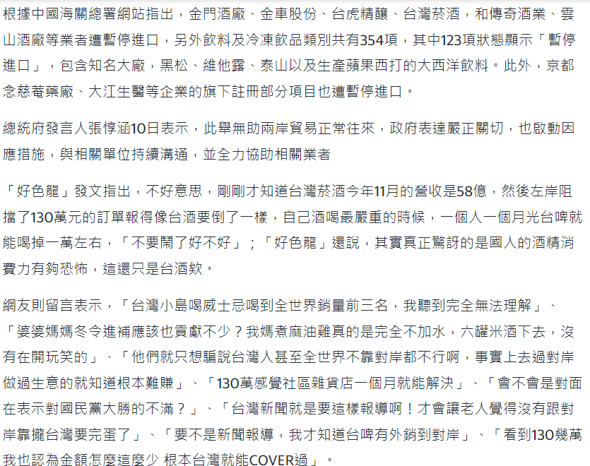 對,一個月台酒130萬訂單沒什麼?那為什麼不提金門高梁呢?