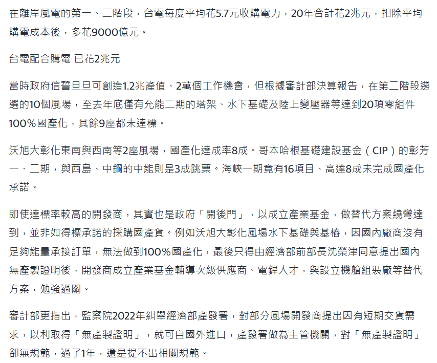 坦白說,這些錢,若用核能發電,然後投資在教育/實驗上,說不定還有更適台灣的綠電工業產生,花這些錢如同買天然氣發電一樣,只少了PM2.5其它一點都沒少!