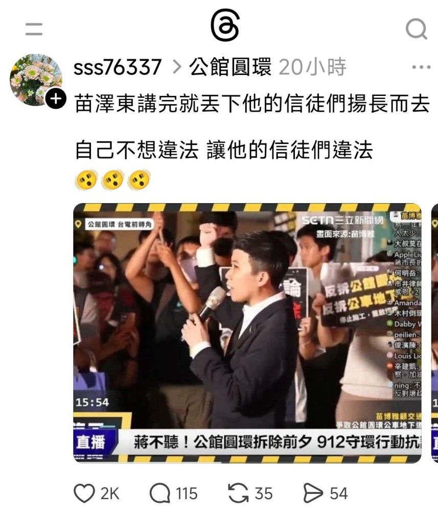 2025-09_苗頭不對就拋下支持者的苗博雅 分類:Librapolitics_時光點評26 九月, 2025發表於時事政策,民進黨,不分類,人物標籤:苗博雅,落跑,圓環,拆遷 不得不說,這樣的人還支持的下去,還想選立委? 靠廢死起家,然後民進黨做的爛事沒敢批評,依數據而拆的台北圓環也來亂。事實証明拆遷過程並沒有到很塞車,是不是應該出來為造亂社會道歉一下。 這些梗圖實在好笑,分享給大家。 分享此文: 分享到 Facebook(在新視窗中開啟) Facebook 分享到 X(在新視窗中開啟) X 更多 Share on LinkedIn(在新視窗中開啟) LinkedIn 分享到 Telegram(在新視窗中開啟) Telegram Email a link to a friend(在新視窗中開啟) 電子郵件 喜歡 正在載入... 相關 發表者:Librapolitics_時光點評 對於正義跟下一代的未來必須有堅持 檢視更多文章